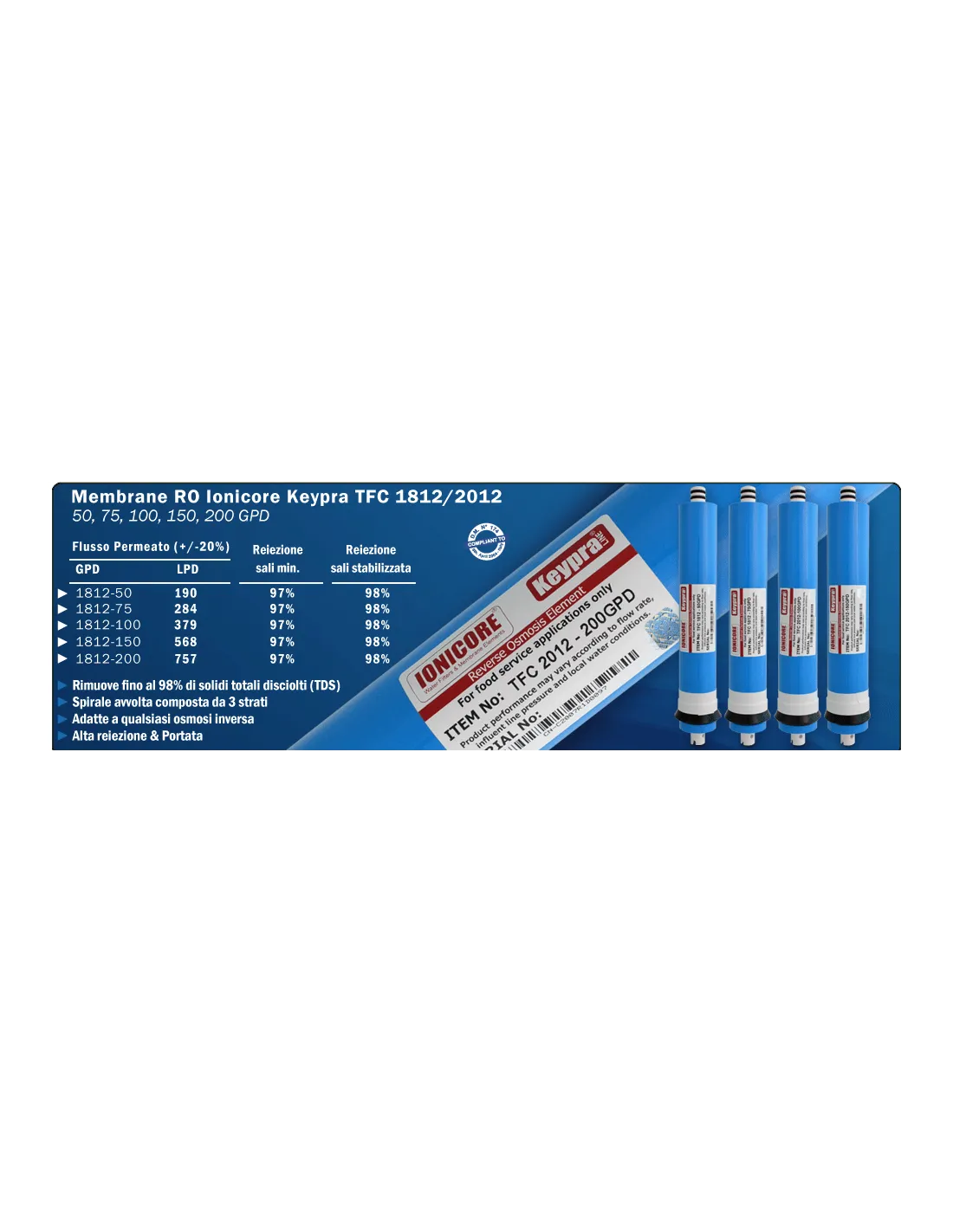 Ionicore Keypra Membrana osmosi RO TFC 2012 - 100 GPD"