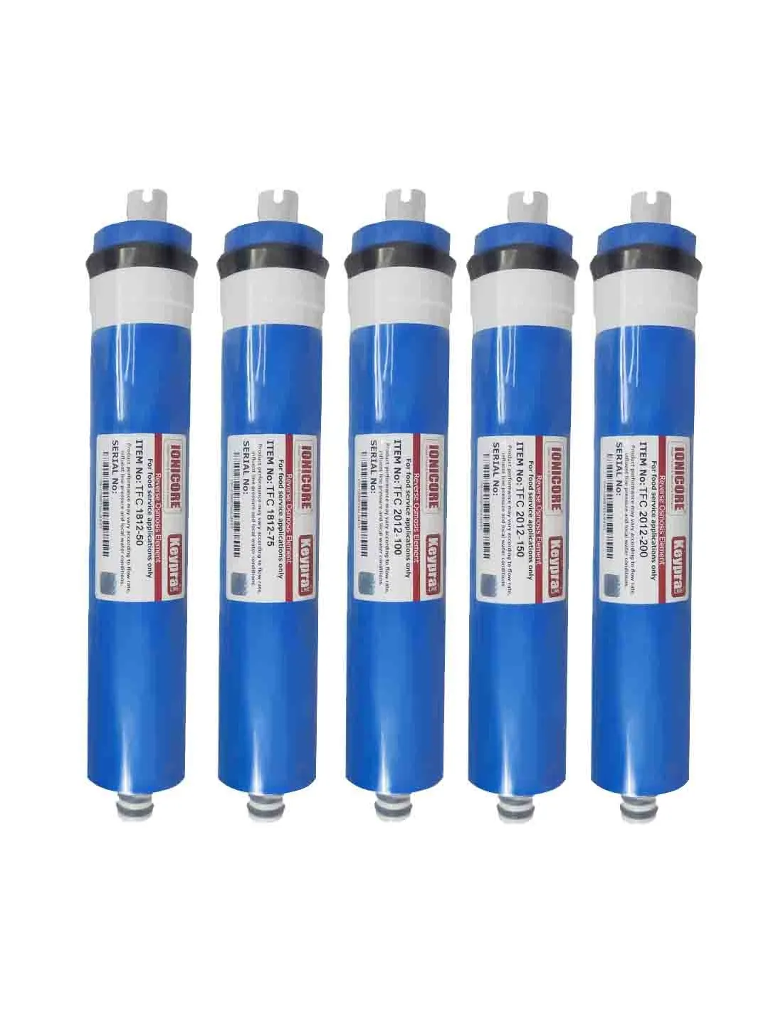 Le membrane per osmosi inversa Ionicore Keypra TFC (thin film composite) sono disponibili con portate da 50 a 200 gal/giorno per l’utilizzo in housings standard per uso residenziale. Tutti i modelli sono certificati NSF / ANSI 58 per la riduzione di Arsenico (“V” Pentavalente), Bario, Cadmio, Cromo (Esavalente), Cromo (Trivalente), Rame, Cisti, Torbidità, Fluoruro, Piombo, Radio 226/228, Selenio e TDS e sono certificati DM 174/2004 (Decreto Ministero Italiano). La membrana rimuove fino al 98% di solidi totali disciolti (TDS), erogando acqua potabile più sana e più sicura.