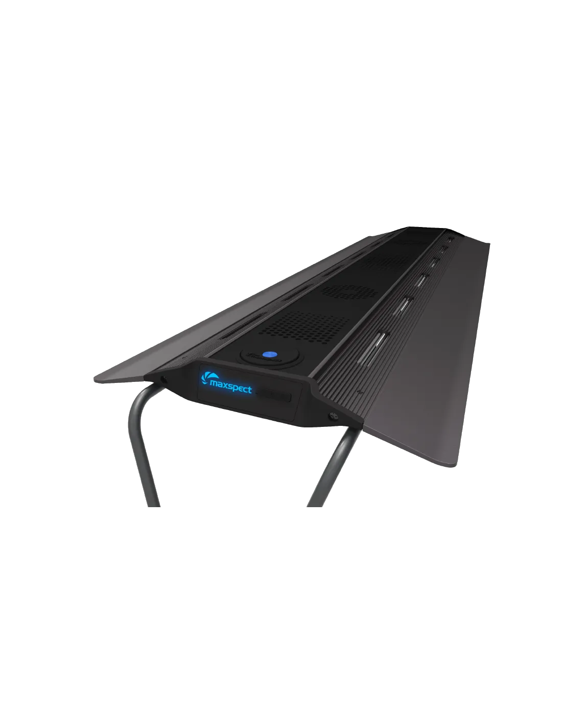 Proseguendo da dove si era interrotta la Maxspect R420r, la RSX-F combina uno stile elegante e aerodinamico con un design che consente il raffreddamento passivo. L'imponente corpo monoblocco, realizzato in alluminio architettonico 3036, ha uno spessore di soli 2,8 mm ai bordi, conferendo all'unità un aspetto elegante su qualsiasi acquario. Come il suo predecessore, la RSX può essere montata su una vasca utilizzando le sue gambe o sospesa sopra l'acquario tramite un set di cavi.
